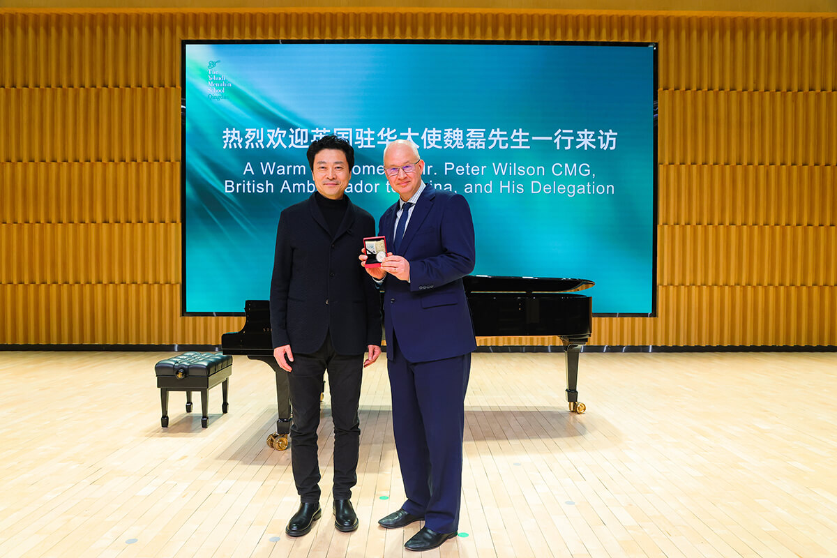 魏磊大使一行还愉快地欣赏了学生们的精彩演出,对同学们的演奏赞誉有加,在演出后与同学们一一握手合影,并亲切询问了他们的学习情况、兴趣爱好和未来志向。魏磊大使表示,看到这样一所学校在中国的蓬勃发展、不断培养出走向世界的青年音乐家,不仅给中国的青少年音乐教育带来宝贵的国际化资源,更重要的是成为了中英两国文化交流和友好往来的重要亲历者和推动者,令人非常激动,英国驻华大使馆非常愿意继续支持青岛耶胡迪梅纽因学校在各领域不断拓展出新的成果。