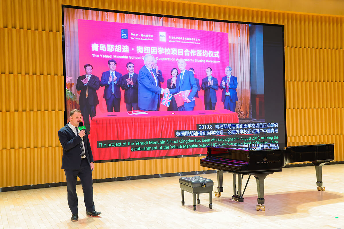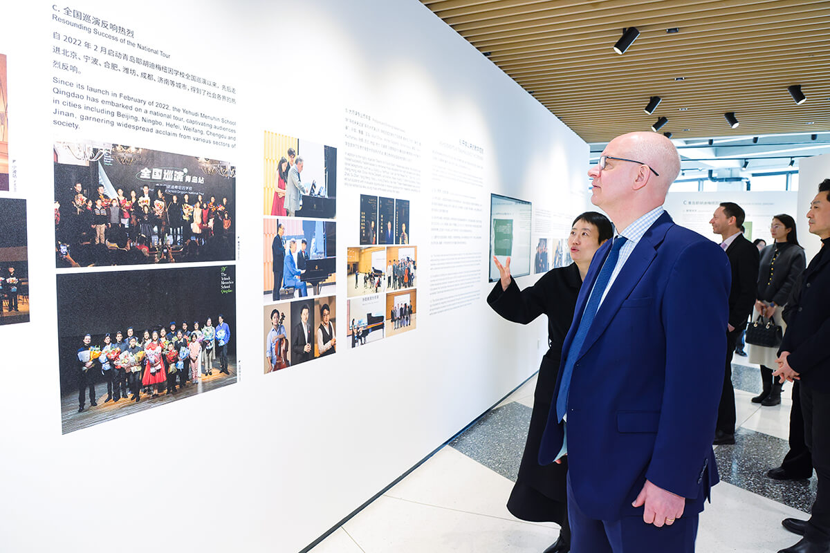 音乐总监Thomas Rosenkranz向魏磊大使一行系统展示了中英两所姊妹校在两国官方特别是外交领域及社会各界的支持下,开展了一系列的交流互访,包括2025、2026年两次赴英访学,在伦敦国王十字音乐厅、金融城市长官邸等奉献精彩演出,获得英国各界的高度评价,中国驻英国大使也郑泽光亲临现场。创立三年多的青岛梅纽因学校已有众多毕业生被英国各大著名院校录取,而英国皇家音乐学院、皇家伯明翰音乐学院、苏格兰皇家音乐学院等众多英国的世界名校也纷纷将中国考点设在了青岛梅纽因学校。这些往来,早已超越校际合作的范畴,成为中英人文友好交流中持续而具体的一部分。
